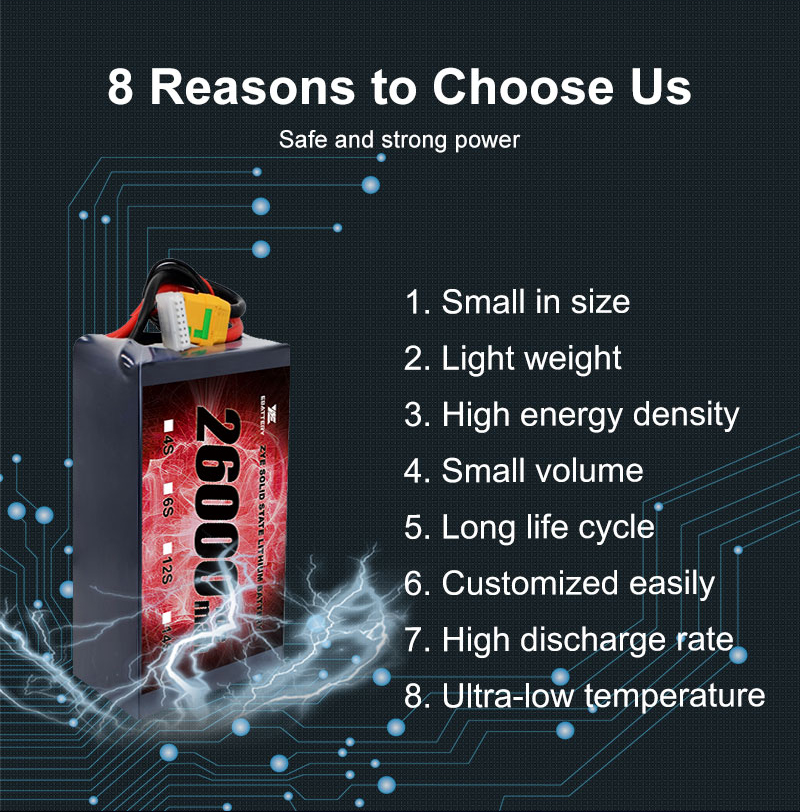 แบตเตอรี่โซลิดสเตตนี้ออกแบบมาเพื่อปฏิวัติประสบการณ์เสียงพึมพำของคุณ ด้วยความหนาแน่นของพลังงานสูงคุณสามารถบรรลุเวลาเที่ยวบินที่ขยายออกไปและความคล่องแคล่วที่ไม่มีใครเทียบ ไม่ว่าคุณจะเป็นงานอดิเรกหรือผู้นำในอุตสาหกรรมแบตเตอรี่ 16000mAh ของเราเป็นเพื่อนที่สมบูรณ์แบบสำหรับการผจญภัยทางอากาศของคุณ