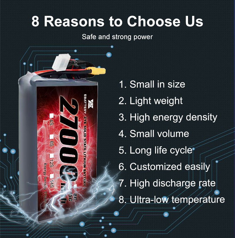 10 ปีของความเชี่ยวชาญ: ด้วยประสบการณ์กว่าทศวรรษในการผลิตแบตเตอรี่ลิเธียมเราเป็นผู้นำในอุตสาหกรรมในโซลูชั่นแบตเตอรี่ประสิทธิภาพสูงรวมถึงจัดส่งที่รวดเร็ว 27000mAh 27AH 28000MAH28AH 6S 7S 12S 20S HV และชุดแบตเตอรี่ Li-ion State ความหนาแน่นสูงความหนาแน่นสูง.