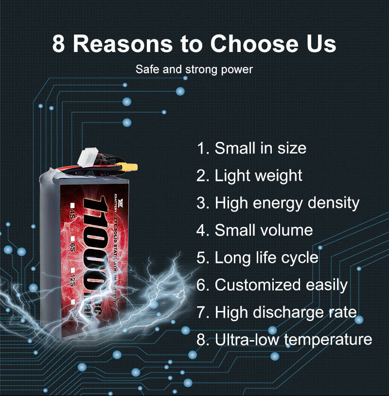 เทคโนโลยีที่ทันสมัย: การใช้ประโยชน์จากนวัตกรรมโซลิดสเตตเพื่อความปลอดภัยและความหนาแน่นของพลังงานที่เพิ่มขึ้นรวมถึงของเราผู้ผลิตแบตเตอรี่ของโซลิดสเตตความหนาแน่นพลังงานสูงแบตเตอรี่โซลิดสเตต 11000mAh 5C 10C 3S6S แบตเตอรี่โดรนเหมาะอย่างยิ่งสำหรับแอปพลิเคชันเสียงพึมพำที่มีความต้องการสูง