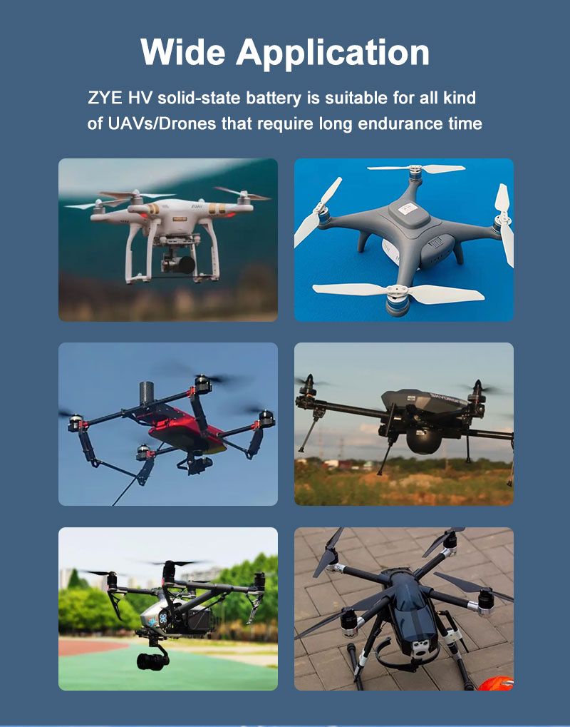 สำหรับ UAV ที่ใช้งานในทะเลทราย ภูมิภาคอาร์คติก หรือพื้นที่ภูเขา แบตเตอรี่ชนิดนี้ช่วยให้เวลาบินคงที่ แทนที่จะยุบที่ขอบของซองจดหมาย
