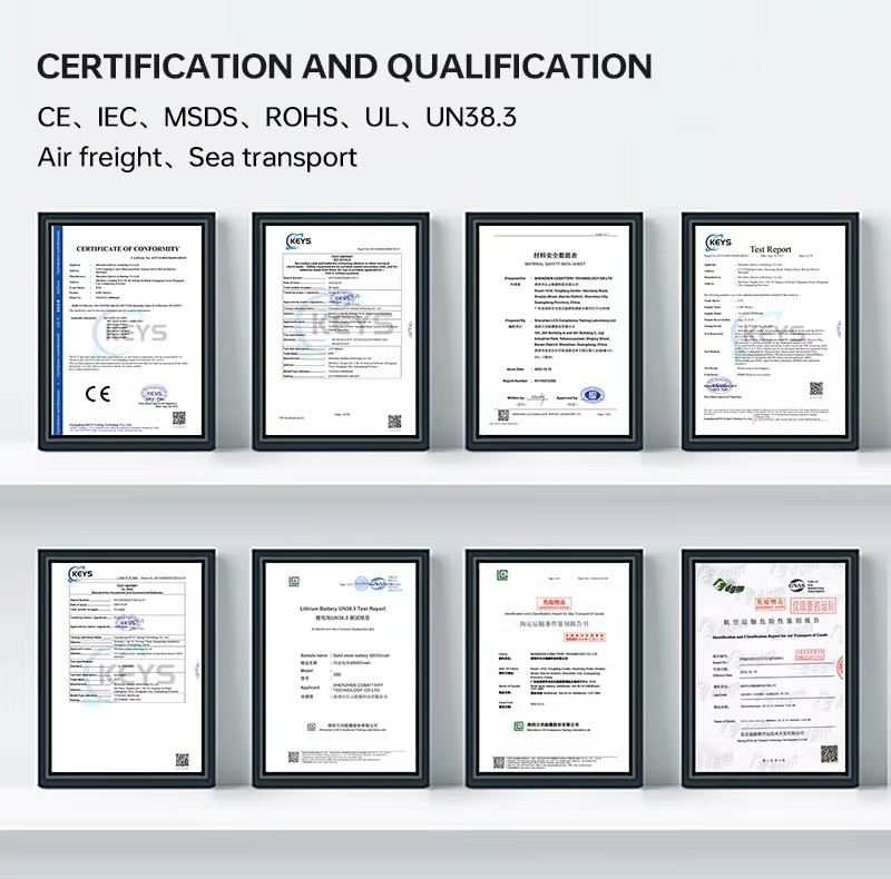 ของเราแบตเตอรี่โซลิดสเตตใหม่ได้รับการรับรองตามมาตรฐานสากลมั่นใจในความปลอดภัยและความน่าเชื่อถือ: